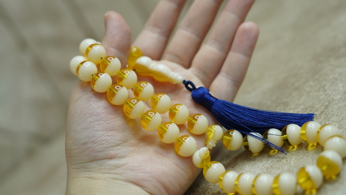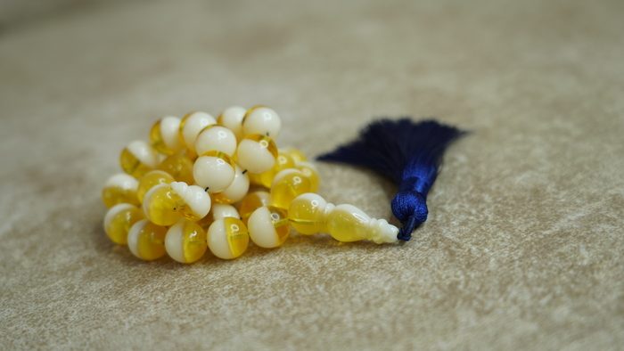 مسباح مستكة شبيه الكهرب، بتصميم يجسد الجمال الطبيعي والأناقة العصرية! يأتي بكروش أزرق نيلي يبرز فخامة الرجل الشرقي الأصيل..