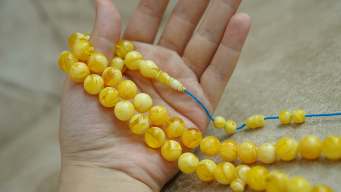 مسبحة مستكه بأسلوب فريد تحاكي مسابيح الكهرب الأصلي من حيث اللون الأصفر النقي وتدرجاته المزينة للسبحة بكل أناقة ..