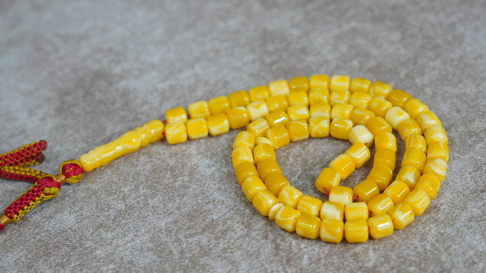 هذه السبحة المصنوعة من تراب الكهرب الطبيعي، بتصميم ناعم يعكس البساطة الراقية في كل تفصيلة.