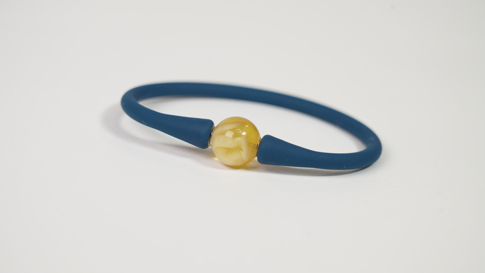 سوار جميل بخيط أزرق متين يتوسطه حبة من الكهرمان ..