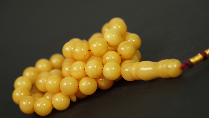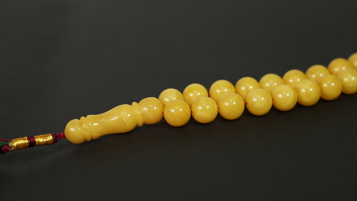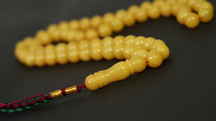 أضف لمظهرك لمسة من الوقار والأناقة مع هذا المسباح المصنوع من حجر الكهرب الطبيعي، وبخيط جميل يعكس الذوق الرفيع. يتميز بكركوش فاخر مصمم بعناية لإضفاء طابع مميز على كل تفصيلة.
